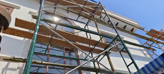 Også det faktum, at de blander stillads og bambus på de svært tilgængelige områder er rigtig godt. Vi er meget spændt på, hvordan det kommer til at gå, men indtil videre er vi fortrøstningsfulde, og vi kan godt lide de folk, der kommer her. En malermester der kommunikerer og fortæller, hvad han har tænkt sig at gøre er guld.
