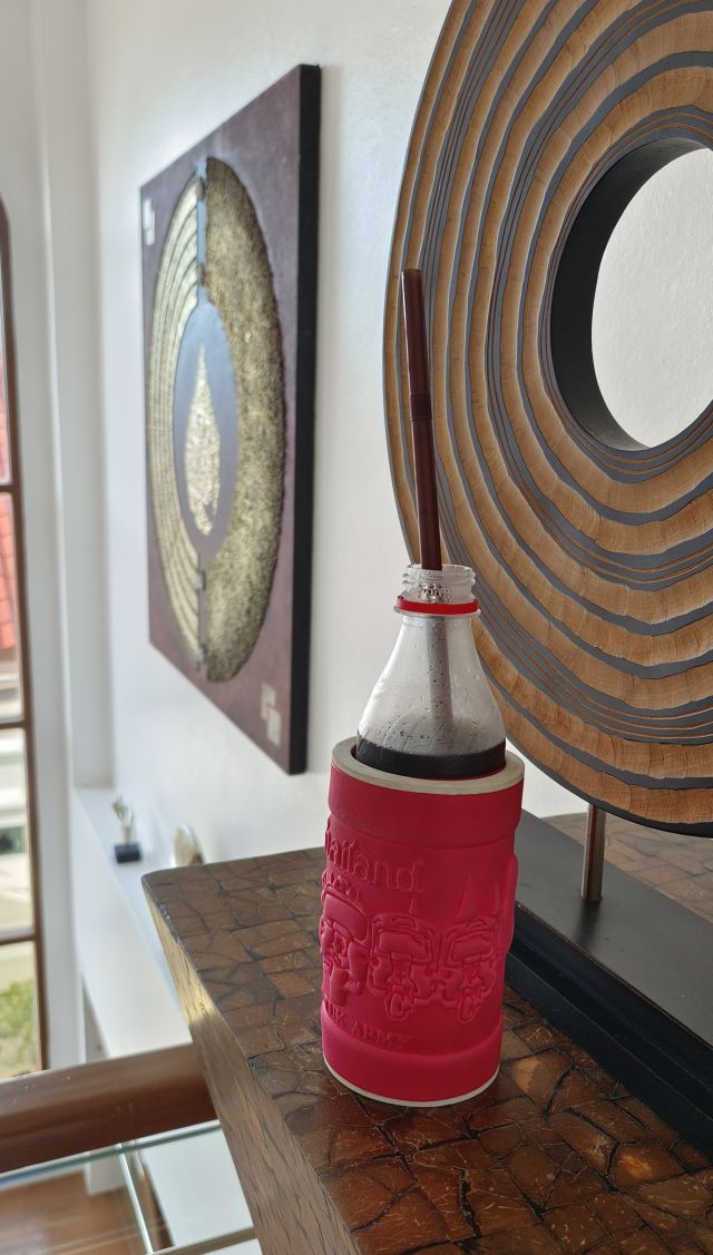 Pengemæssigt vinder vi ikke meget, for prisen på Coca Cola i Thailand er ikke så høj. Og sammenlignet med en dansk vand, så er prisforskellen meget lille. Men vi har lavet et lille statement og sørget for, at de første 30 minutter på gåbåndet i fitness centeret ikke bliver brugt på at forbrænde morgencolaen.